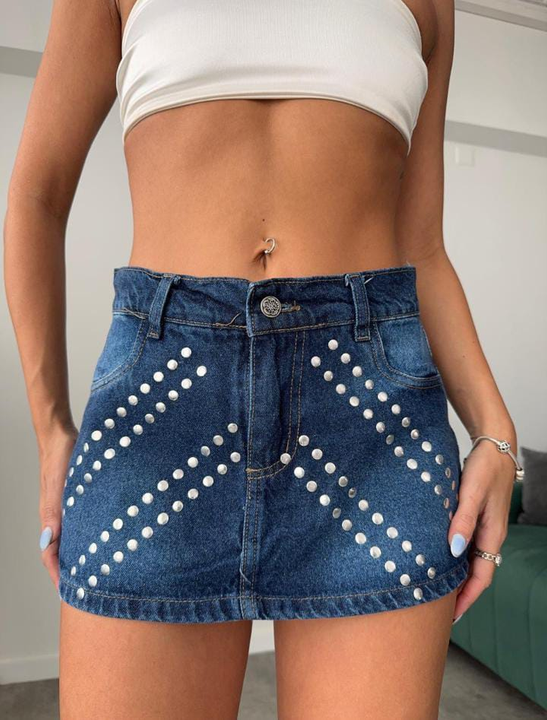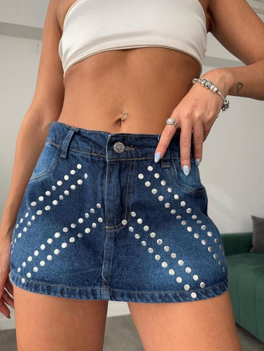 Mini short pollera azul con strass