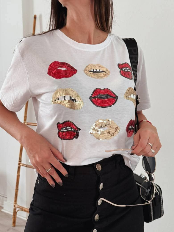 REMERA CON LENTEJUELA BORDADO